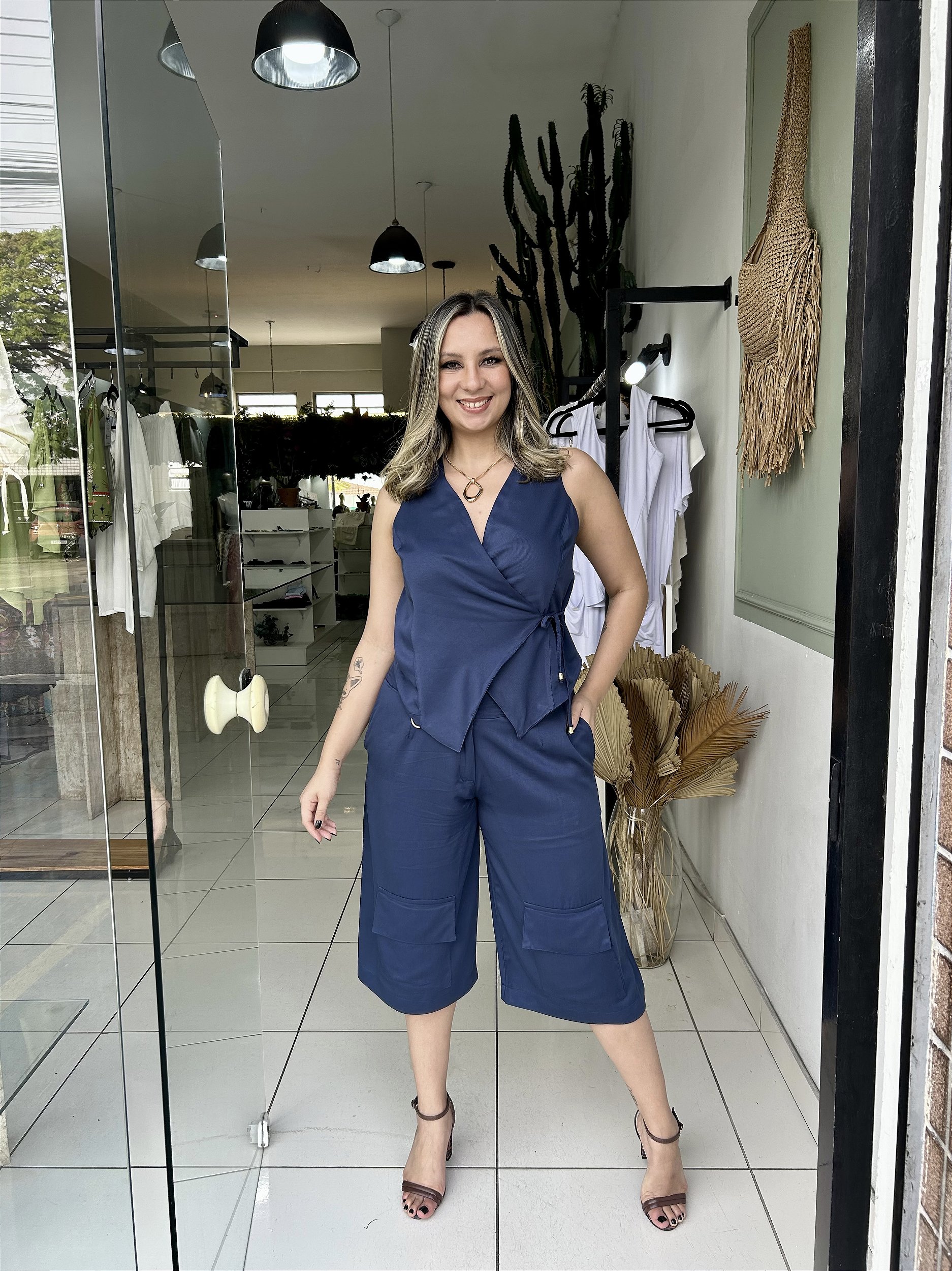 Bermuda em viscose sarjada